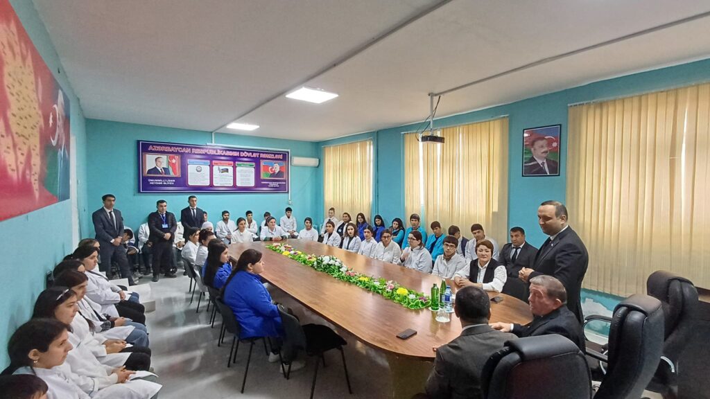 “Əvvəlcə direktor Nazim Məmmədov müəllim-tələbə heyəti adından qonaqları salamlayaraq məktəbin fəaliyyəti barədə geniş məlumat verib. Daha sonra çıxış edən Şahin İsmayılov və Müşfiq Səfərov görüş iştirakçıları ilə səmimi söhbət edərək tövsiyələrini bildirmiş, ixtisaslar üzrə peşəkarlaşmanın vacibliyini vurğulamış və onlara uğurlar arzulamışlar. Görüş aktiv müzakirələrlə davam edib”.