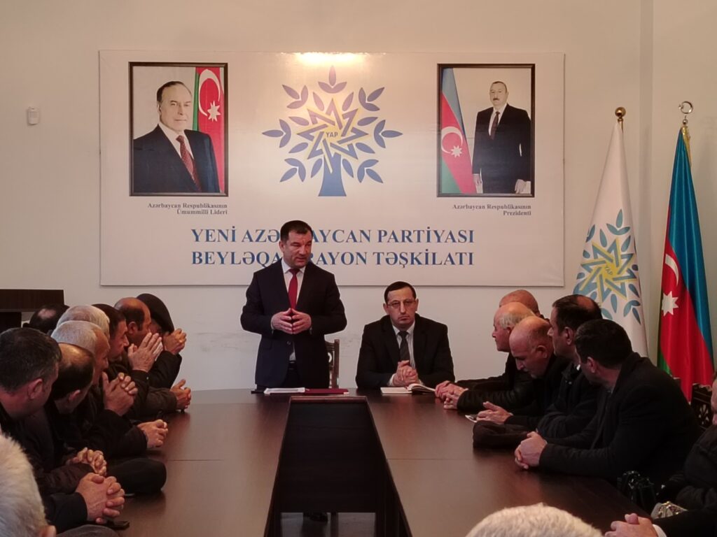 Tədbiri giriş sözü ilə açan YAP Beyləqan rayon təşkilatının sədri Müşfiq Səfərov bildirib ki, bu gün dünyada inkişafın Azərbaycan modelinin mövcudluğu hər birimizi qürurlandırır. Ümummilli Lider Heydər Əliyev 1993-cü ildə xalqın təkidli tələbi ilə hakimiyyətə gəldiyi zaman dövrün reallıqlarına əsasən bu əminliyi ifadə etmişdi ki, bu çətin günlər keçib gedəcək, harada yaşamasından asılı olmayaraq, hər bir azərbaycanlı belə qüdrətli, zəngin ölkənin vətəndaşı olması ilə fəxr edəcək. Ulu Öndərin bu çağırışı çox qısa zamanda reallığa çevrildi. Azərbaycan yenidən quruldu, dövlətçiliyin əsasları yaradıldı. Ümummilli Liderin düşünülmüş və məqsədyönlü siyasəti nəticəsində qurulan möhkəm təməl sonrakı davamlı inkişafın əsasına çevrildi. Sözü ilə əməl birliyi, Heydər Əliyev yoluna sadiqlik Yeni Azərbaycan Partiyasının cəmiyyətdə nüfuzunun artmasında əhəmiyyətli rol oynadı. Son 20 ildən artıq dövrdə Ulu Öndər Heydər Əliyevin siyasi kursunu uğurla davam etdirən Prezident İlham Əliyevin rəhbərliyi ilə daha da inkişaf edən, təkmilləşən, yeniləşən Yeni Azərbaycan Partiyası nəinki ölkəmizdə, regionda ən güclü siyasi təşkilatdır.