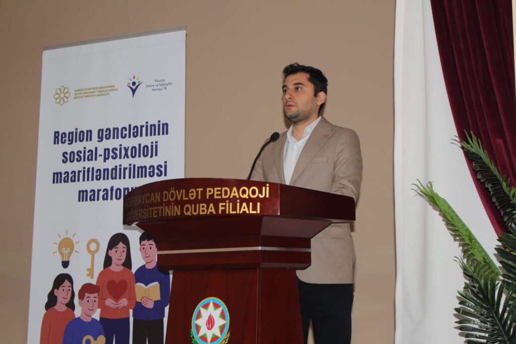 Azərbaycan Respublikasının Qeyri-Hökumət Təşkilatlarına Dövlət Dəstəyi Agentliyinin maliyyə dəstəyi və “Psixoloji Xidmət və Tədqiqatlar Mərkəzi” İctimai Birliyinin təşkilatçılığı ilə Quba şəhərində “Region gənclərinin sosial-psixoloji maarifləndirilməsi marafonu” adlı layihə çərçivəsində tədbir keçirilib.
